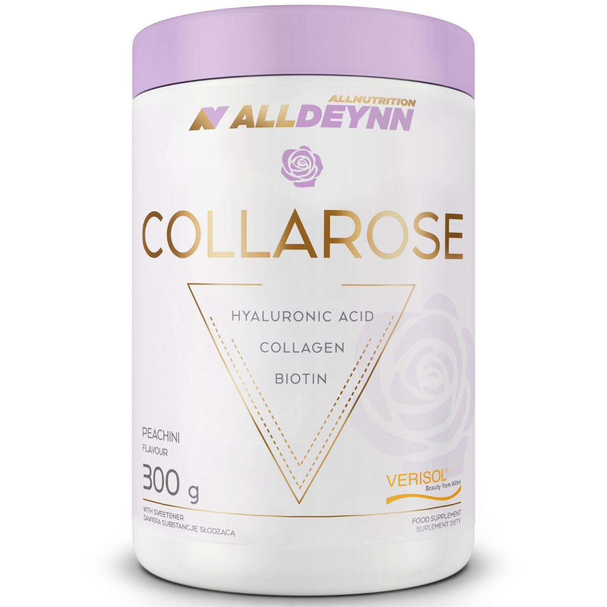 Datorită gamei largi de forme fizice COLLAROSE din linia ALLDEYNN, este ușor să alegeți produsul ideal pentru nevoile dumneavoastră. Fiecare conține peptide Verisol® și aditivi cu potențial auxiliar, adică vitaminele C, B7 și acid hialuronic. Puteți alege pulbere cu gust răcoritor, disponibilă în versiune obișnuită (din carne de vită) și vegetariană (din pește), precum și capsule care facilitează dozarea sau shoturi (80 ml), pe care le puteți lua cu dvs. oriunde, chiar și în grabă.