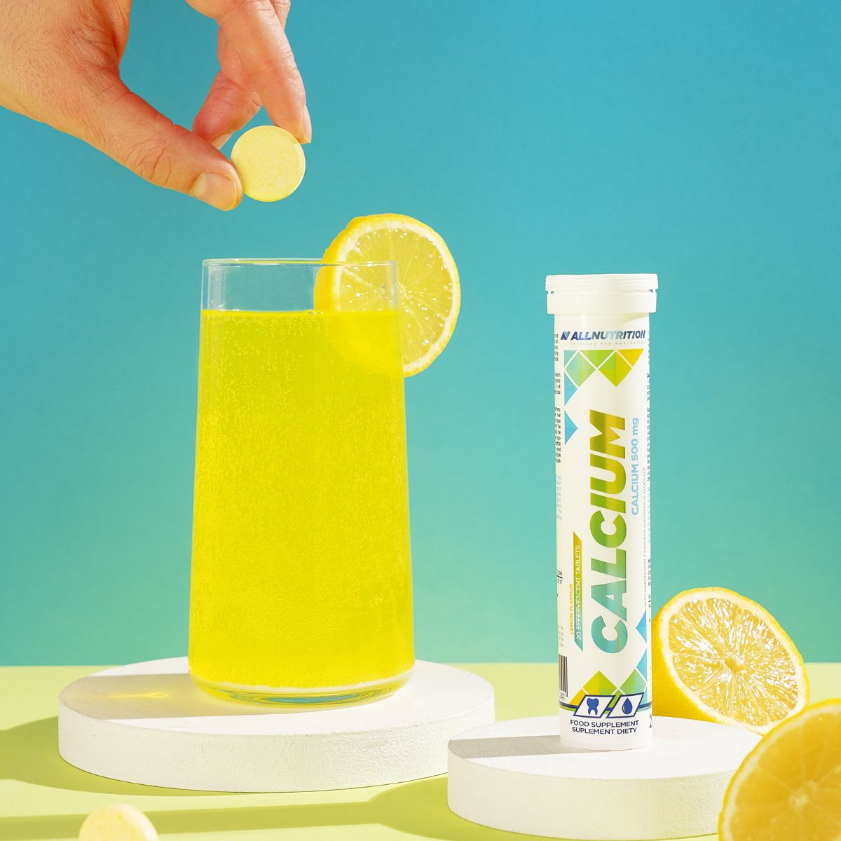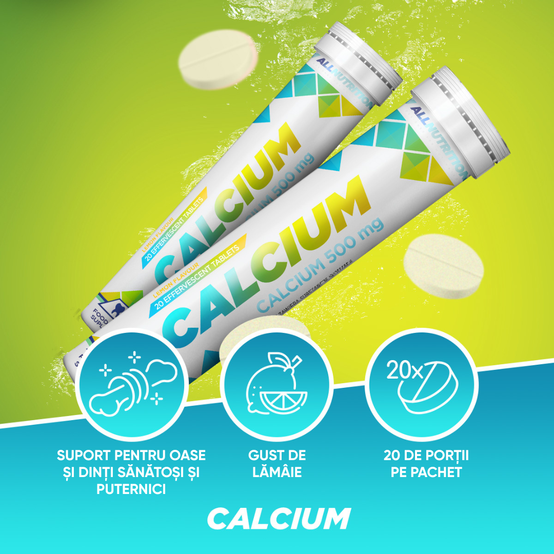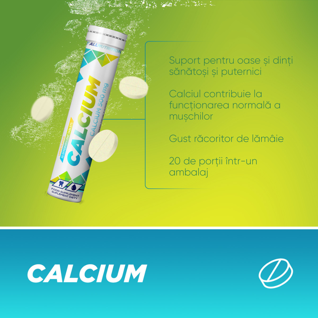 ALLNUTRITION CALCIUM este un supliment alimentar sub formă de tablete efervescente cu un gust răcoritor de lămâie. A fost creat pentru a completa dieta zilnică într-un mod simplu și plăcut cu unul dintre cei mai importanți minerali pentru organism – calciul. Este alegerea ideală pentru oricine dorește să aibă grijă de oasele, dinții și mușchii săi.