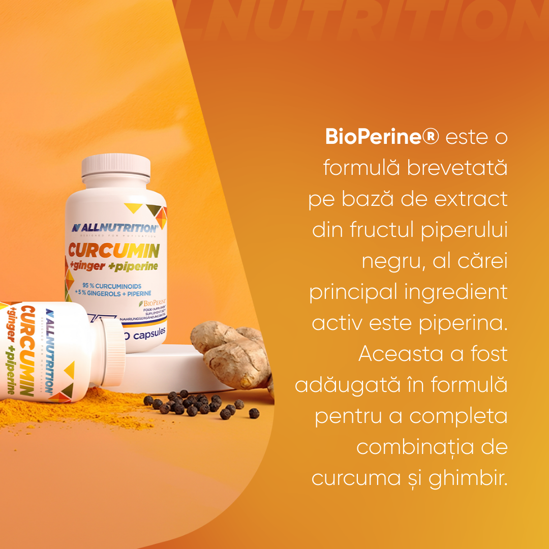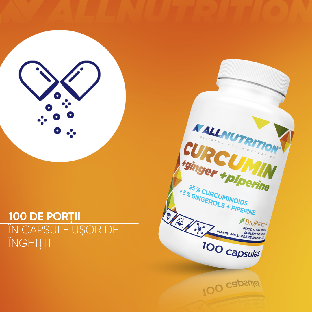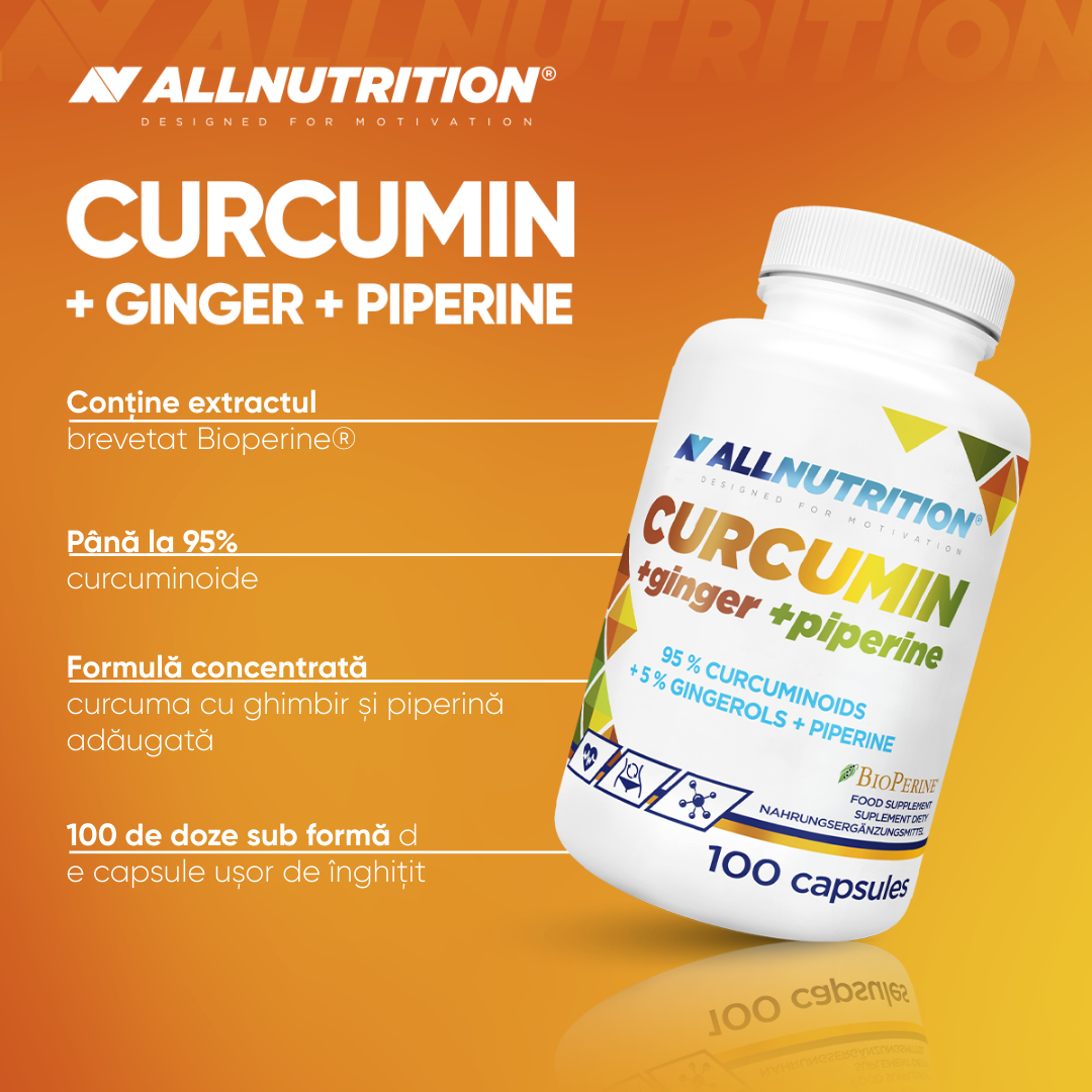 extract de rizom de zerdiceaf curcuma longa, învelișul capsulei (gelatină), extract din rădăcină de ghimbir zingiber officinale, amidon, extract de fructe de piper negru bioperine® piper nigrum, antiaglomeranți: dioxid de siliciu, săruri de magneziu ale acizilor grași.