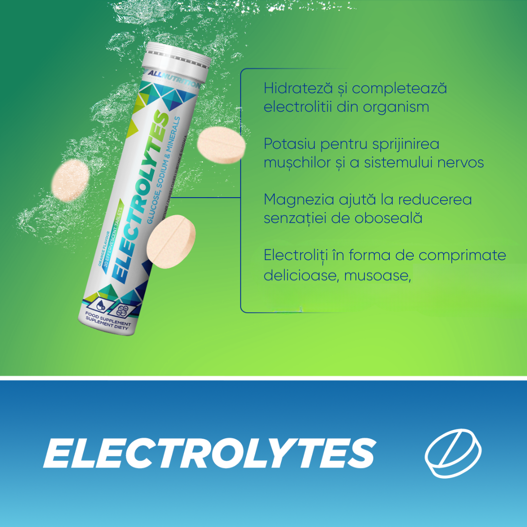 ALLNUTRITION ELECTROLYTES este un concentrat modern de băutură izotonică sub formă de tablete efervescente, destinat utilizării în timpul activității fizice, înainte sau imediat după aceasta. Rolul său principal este de a compensa rapid pierderea de lichide și electroliți. În același timp, furnizează ingrediente energetice și funcționale care pot fi utilizate în timpul antrenamentelor intense sau ca un bun remediu pentru recuperarea forțelor după efort fizic.