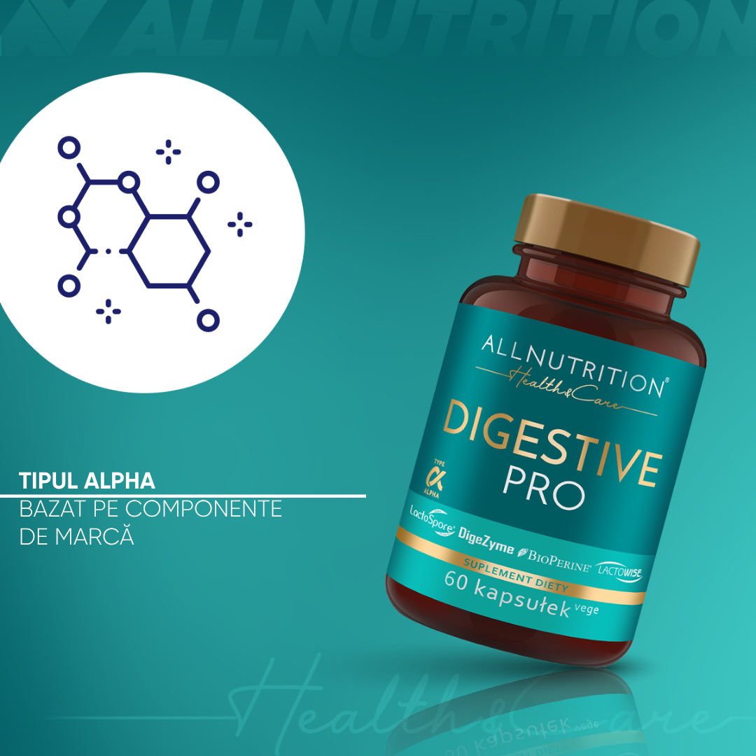 digezyme® kompleks enzymatyczny [α-amylaza (z aspergillus oryzae), neutralna proteaza (z bacillus subtilis), celulaza (z trichoderma longibrachiatum), laktaza (z aspergillus oryzae), lipaza (z rhizopus oryzae)], clorhidrat de betaină, învelișul capsulei (hidroxipropil metilceluloză), lactospore® kompleks probiotyczny, lactowise® kompleks probiotyczno-prebiotyczny, papain, bromelaină, beta-1,3/1,6-d glukan z drożdży piwnych saccharomyces cerevisiae, agent antiaglutinant: săruri de magneziu ale acizilor grași, extract de fructe de piper negru bioperine® piper nigrum, agent antiaglutinant: dioxid de siliciu