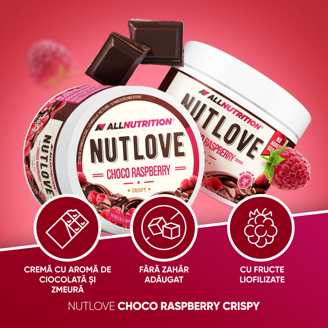 îndulcitor: maltitoli, uleiuri vegetale (shea, rapiță) în proporții variabile, pudră de cacao cu conținut redus de grăsime 8%, pudră de zmeură liofilizată 4%, emulgator: lecitină, aromatizant natural