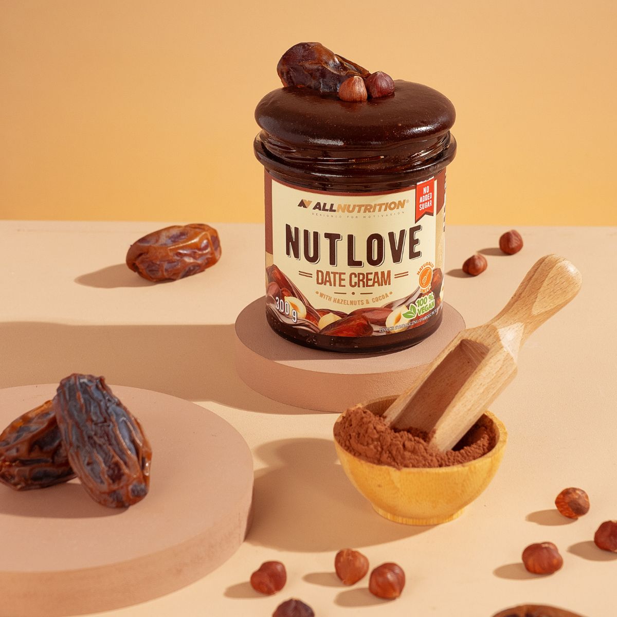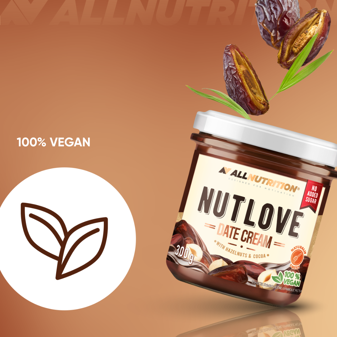 ALLNUTRITION NUTLOVE DATE CREAM este o cremă delicioasă, vegană, din curmale cu alune de pădure și cacao, care demonstrează că în simplitate stă cea mai mare putere. Creată pentru cei care caută dulceață naturală și apreciază produsele fără zahăr adăugat și îndulcitori. Este alegerea ideală pentru orice fan al gustărilor fit care vrea să se bucure de o plăcere cremoasă fără compromisuri!