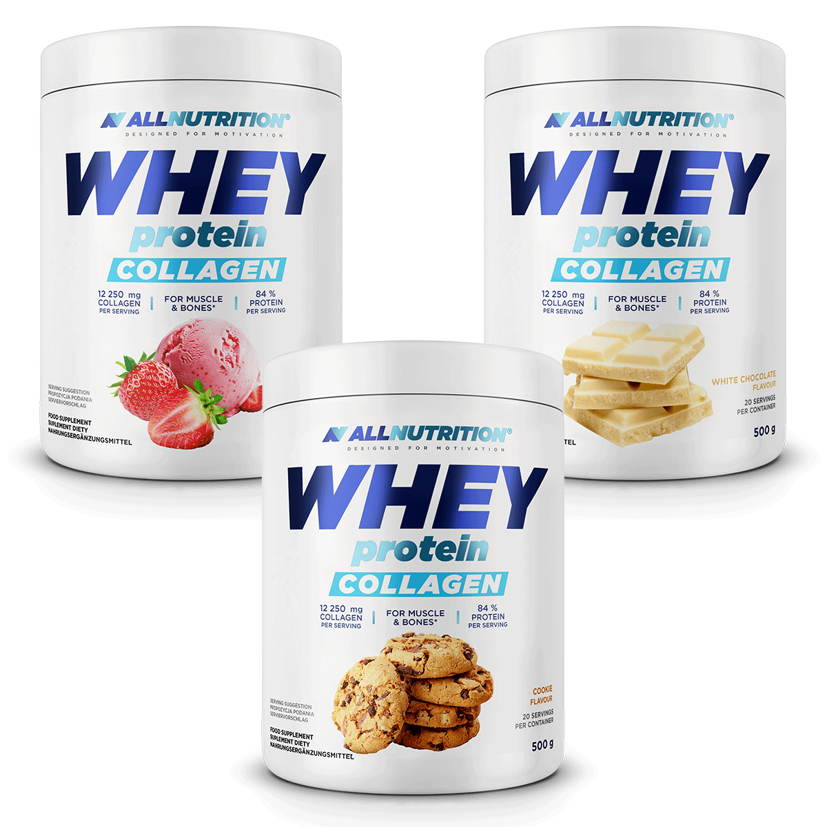 ALLNUTRITION WHEY PROTEIN COLLAGEN este un supliment proteic WPC bestseller într-o nouă versiune – îmbogățit cu peptide de colagen bovin. Nu este doar un sprijin excelent pentru dezvoltarea mușchilor mai mari și mai puternici, ci și o modalitate de regenerare complexă a organismului și oase sănătoase.