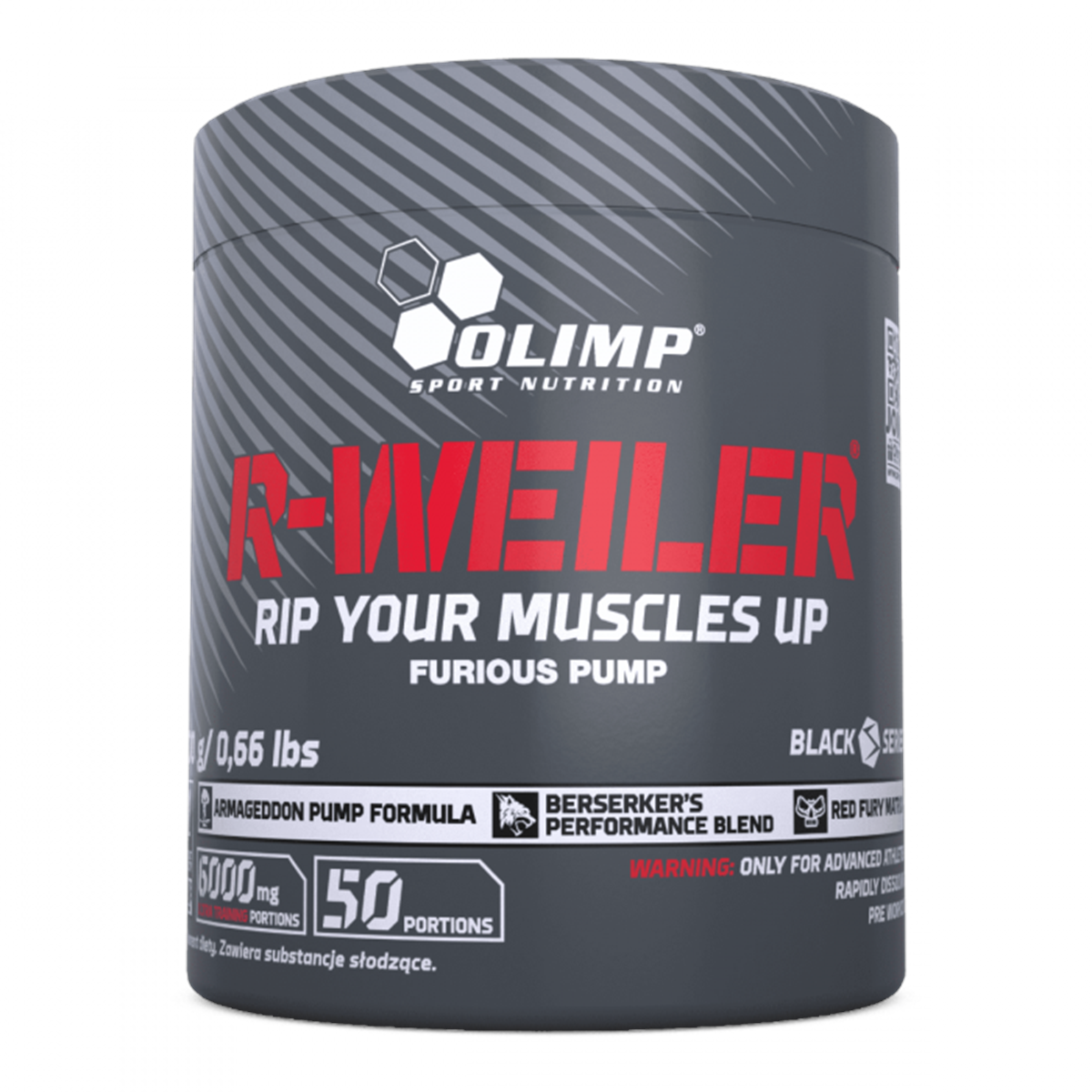 l-arginină alfa-cetoglutarat, beta-alanină, citrat de sodiu, malat de citrulină, creatină monohidrat, agenți antiaglomeranți – fosfați de calciu, dioxid de siliciu, malat de creatină, regulator de aciditate – acid citric, aromă, l-tirozină, colorant – e 150d (pentru toate tipurile de arome de cola), cofeină, îndulcitori – acesulfam k, sucraloză, amidă a acidului nicotinic – niacină, extract din fructe de cayenne (capsicum annuum l.), extract de piper negru (piper nigrum l.), agent de îngroșare – carboximetilceluloză de sodiu, clorhidrat de piridoxină – vit. b6, clorhidrat de tiamină – vit. b1, coloranți – caroteni (a), carmin (b), riboflavină (c), e 150c (d), e 150d (e), e 133 (f), albastru patent v (g), indigo carmin (h), clorofile și clorofiline (i), curcumină (j), antocianine (k), extract de ardei roșu (l), betanină (m), carbon vegetal (n), (a)-(z) - în funcție de gustul produsului, simbolul (a-z) ingredientului utilizat se află lângă data durabilității minime (de preferință înainte de consum)
