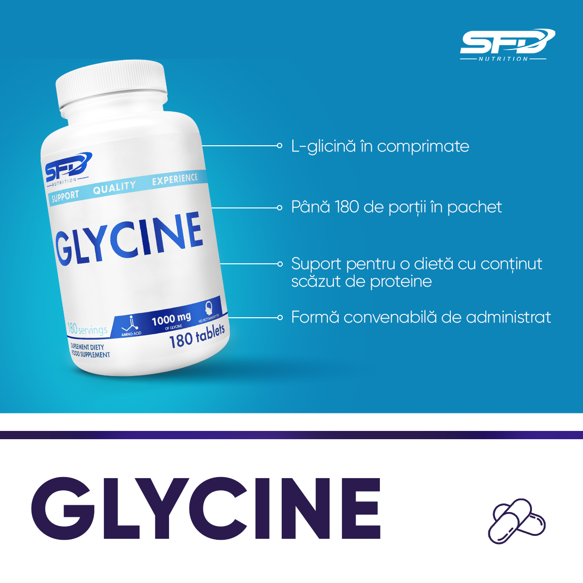 glicina, umplutură: celuloză microcristalină, amidon, antiaglomeranți: dioxid de siliciu, săruri de magneziu ale acizilor grași