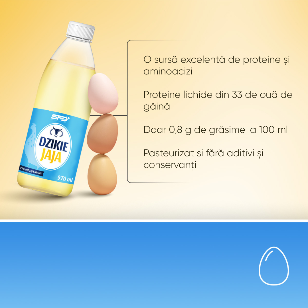 SFD OUĂLE SĂLBATICE reprezintă o modalitate convenabilă de a furniza proteine de înaltă calitate din ouă, inclusiv aminoacizi esențiali. Acest produs a fost creat pentru persoanele care doresc să-și îmbogățească dieta cu surse de proteine sărace în grăsimi și care caută în același timp soluții culinare practice. Datorită procesului de pasteurizare, produsul OUĂLE SĂLBATICE se remarcă printr-o durabilitate crescută și rezistență la factorii externi.