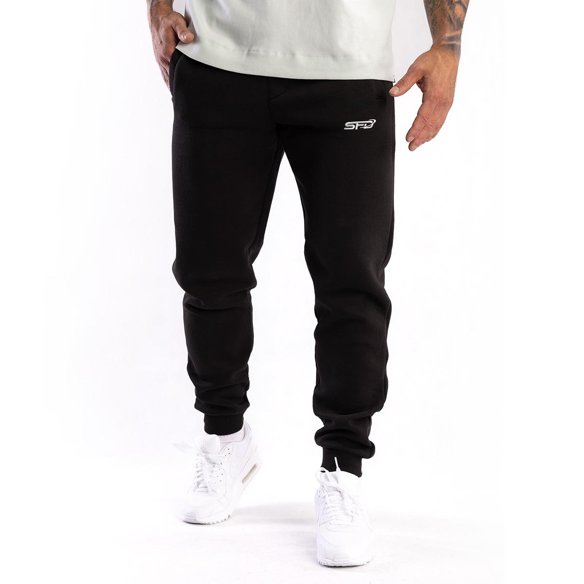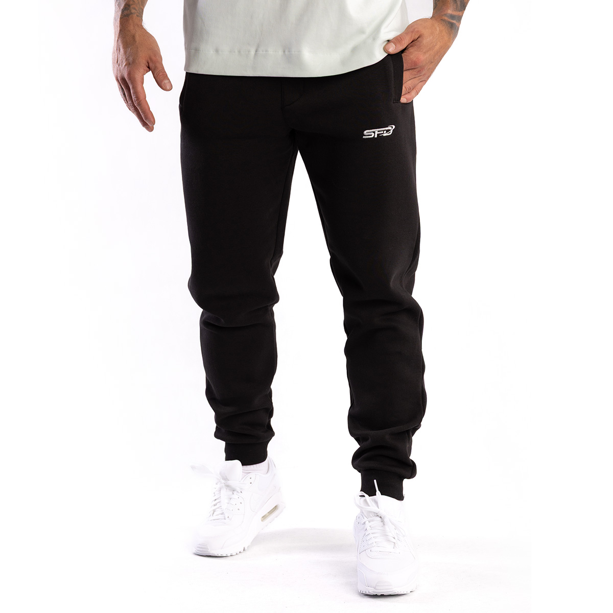SFD WEAR MAN'S JOGGER BLACK este o alegere ideală de pantaloni care se vor potrivi atât la sală, cât și în ținutele de zi cu zi.