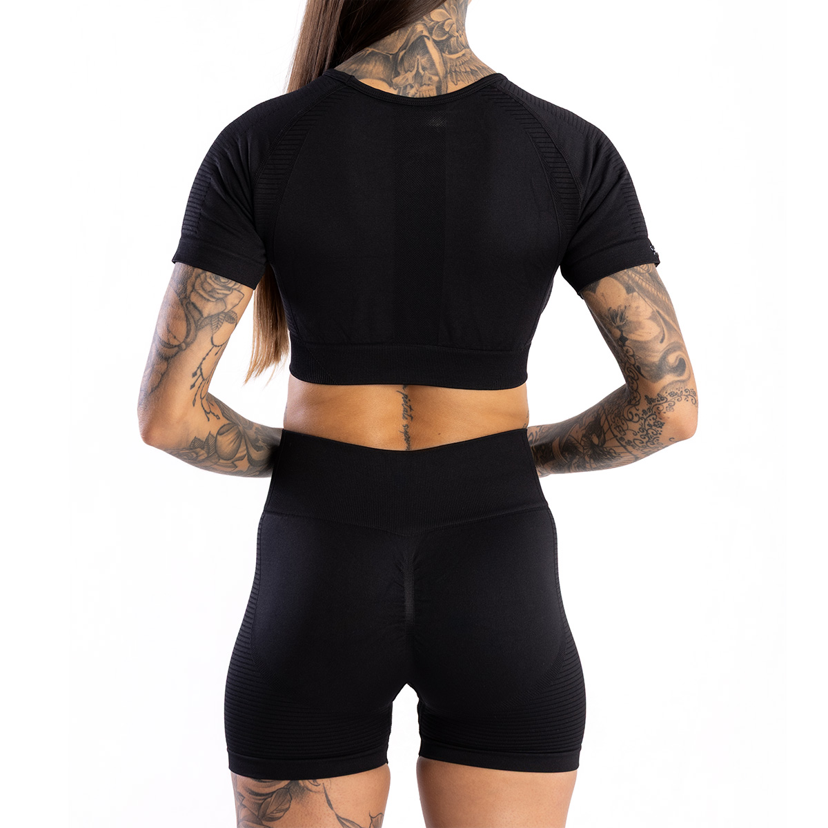 SEAMLESS SHORTS PUSH UP BLACK create cu atenție la detalii, sunt fără cusături și au proprietăți de modelare a siluetei. Evidențiază frumusețea naturală a fiecărei femei! Talia înaltă cu bandă largă modelează zona abdomenului, iar efectul push-up și texturile decorative sub fesieri evidențiază forma acestora. Șorturile se caracterizează printr-un material elastic și plăcut la atingere, asigurând o potrivire perfectă pe corp și un confort ridicat la purtare.