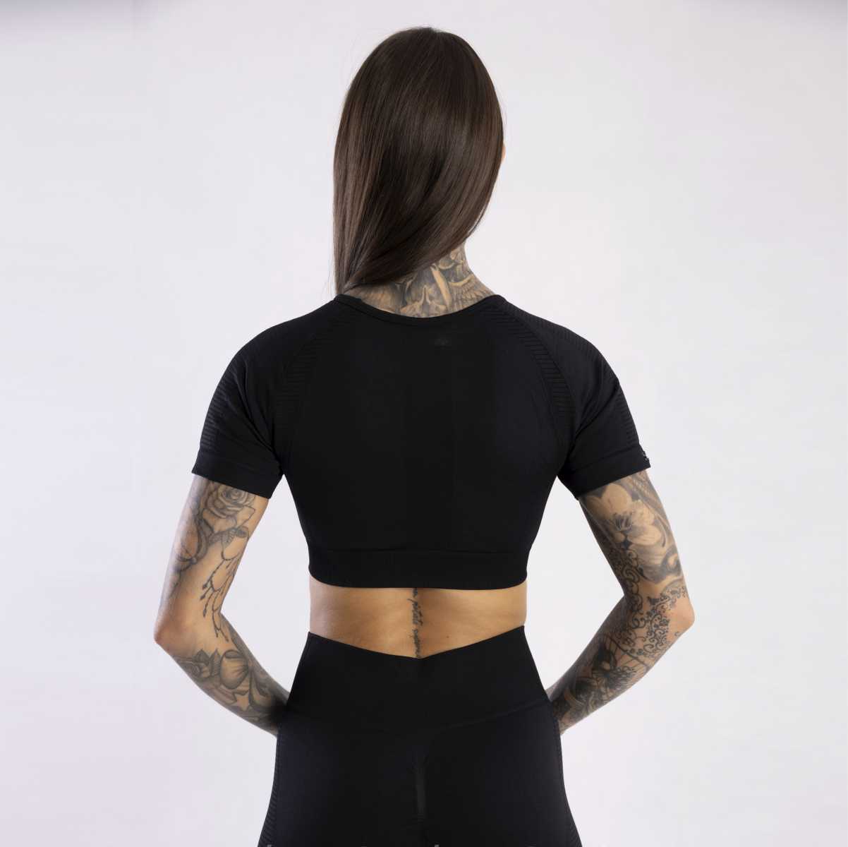 SFD WEAR T-SHIRT SHORT-SLEEVED BLACK îmbină stilul modern cu funcționalitatea de care ai nevoie la fiecare antrenament. Construcția fără cusături a crop topului a fost concepută pentru a se mula perfect pe corp și a evidenția atuurile siluetei tale, oferind în același timp libertate deplină de mișcare. Conform filozofiei noastre: vrem să unim, nu să divizăm – de aceea acest produs este compromisul ideal între designul feminin și performanța sportivă.