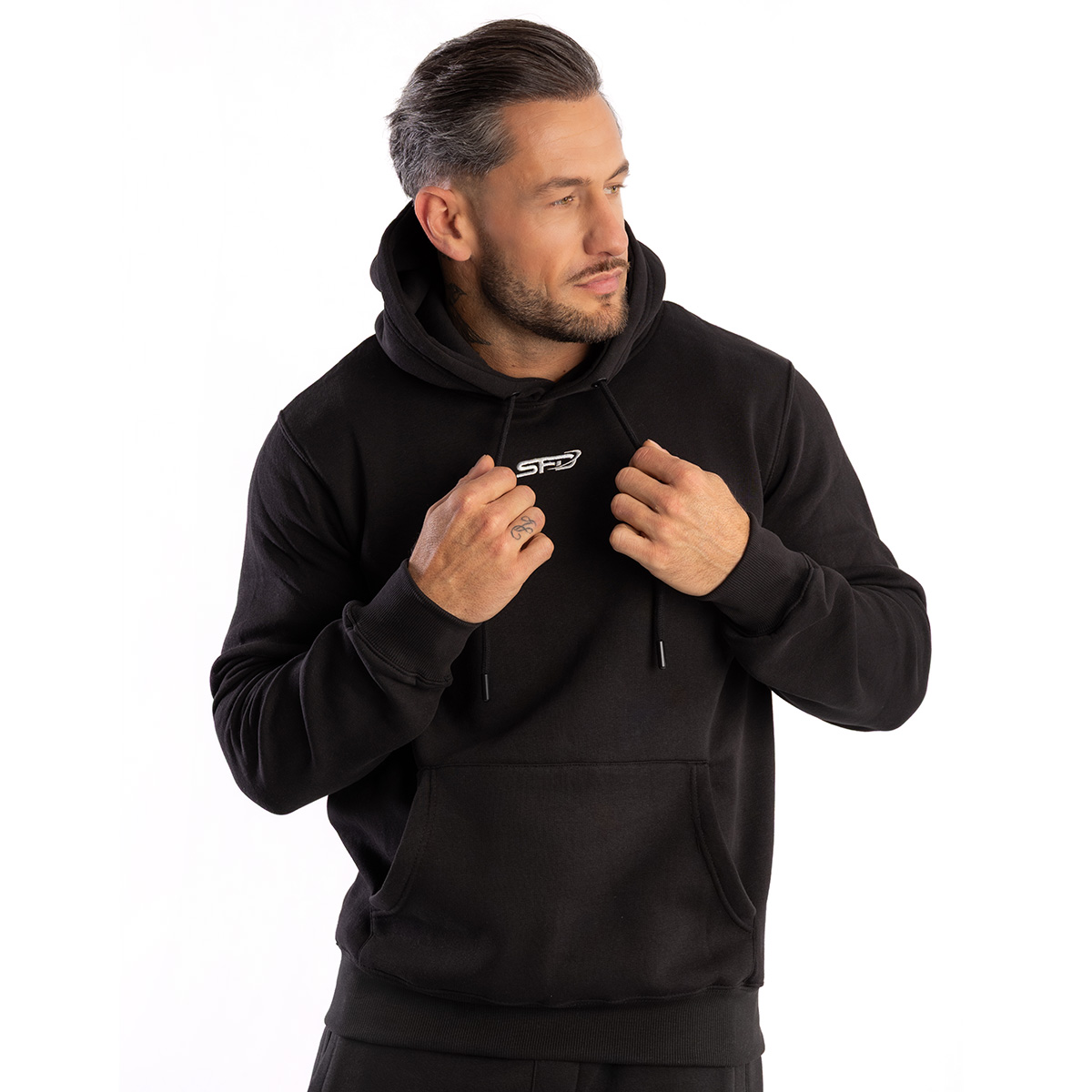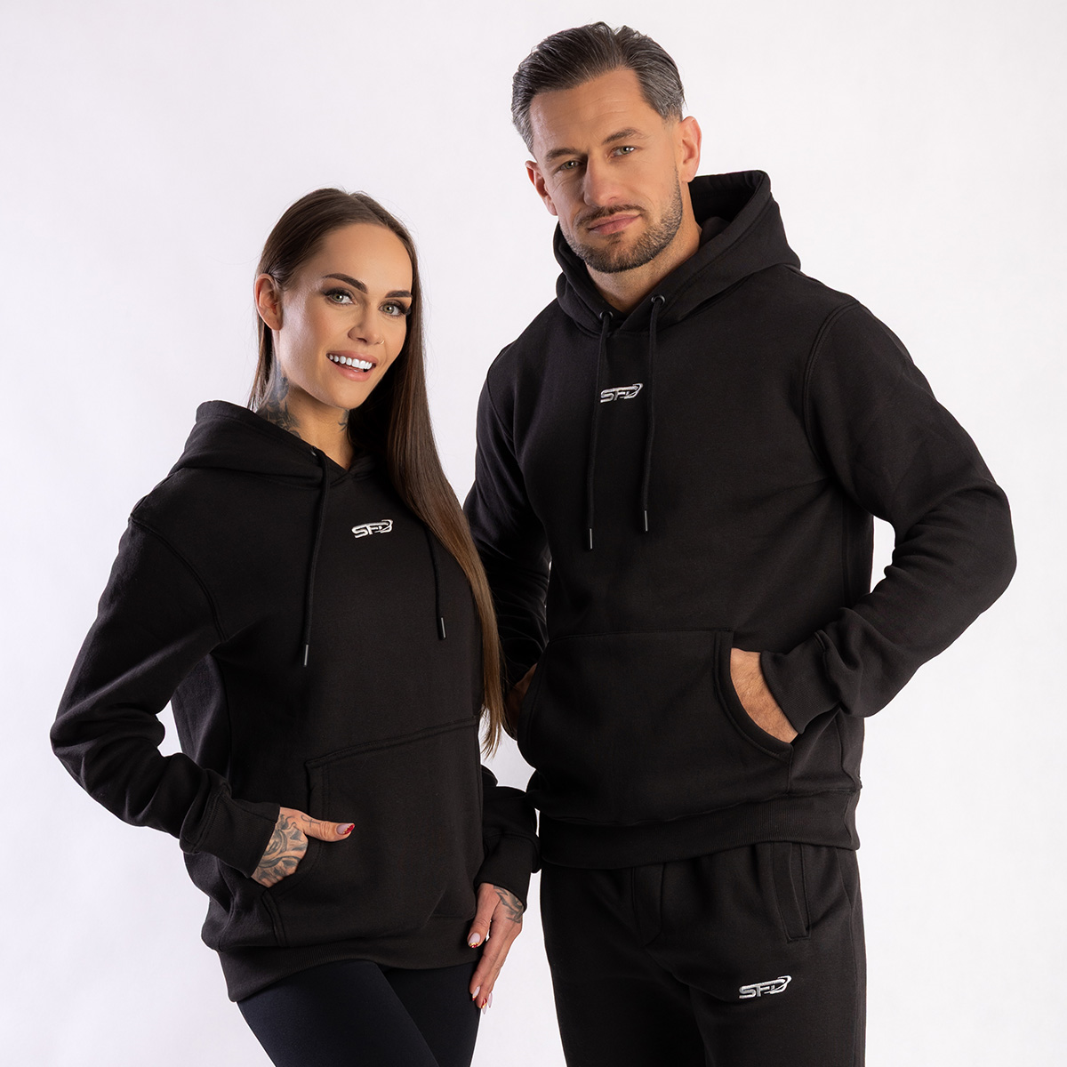 SFD UNISEX HOODIE BLACK nu este doar un hanorac pe care îl porți în serile mai răcoroase. Este o reflecție a stilului tău și o calitate complet nouă în garderoba ta. Scopul companiei noastre este: să unim, nu să divizăm – de aceea produsul nostru îmbină elemente de streetwear de calitate, integrându-se perfect în lumea activității fizice și a spiritului sportiv.